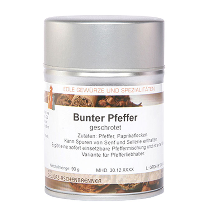 Geschroteter, bunter Pfeffer würzt vor allem Pfeffersaucen, Pfeffersteaks, Pfeffermarinaden und Grillgemüse.