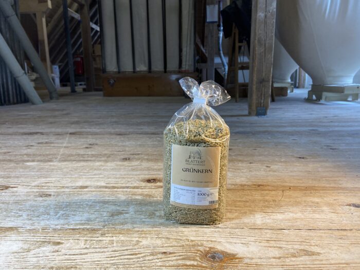 Grünkern ist in der Milchreife geernteter und gedarrter Dinkel. Als Suppe, Bratlinge, Zutat beim Backen