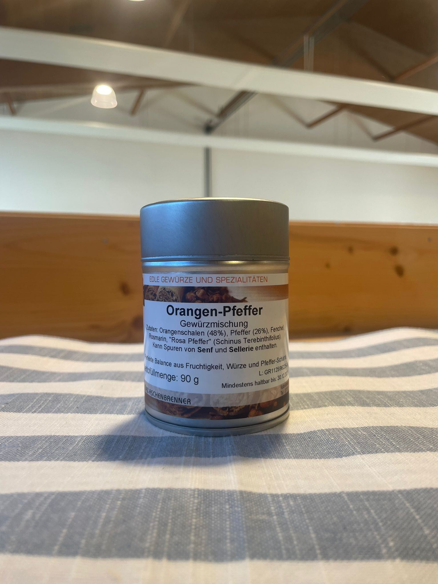 Der Orangen-Pfeffer vereint die fruchtig-herbe Süße von Orangenzesten mit der angenehmen Schärfe von schwarzem Pfeffer und wird durch Fenchel, Rosmarin sowie rosa Pfeffer harmonisch abgerundet – ganz ohne Salz und Zucker. Am Gaumen entfaltet sich zunächst eine feine Zitrusnote, gefolgt von einer ausgewogenen, präsenten Schärfe. Die Gewürzmischung passt hervorragend zu Fisch, Geflügel, Gemüse und Getreidegerichten und verleiht auch Nudelsalaten eine besondere aromatische Tiefe. Besonders gut harmoniert sie zudem mit Ziegen- und Schafskäse und sorgt dort für eine spannende Balance aus Frische, Würze und feiner Süße.